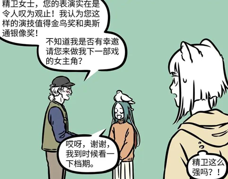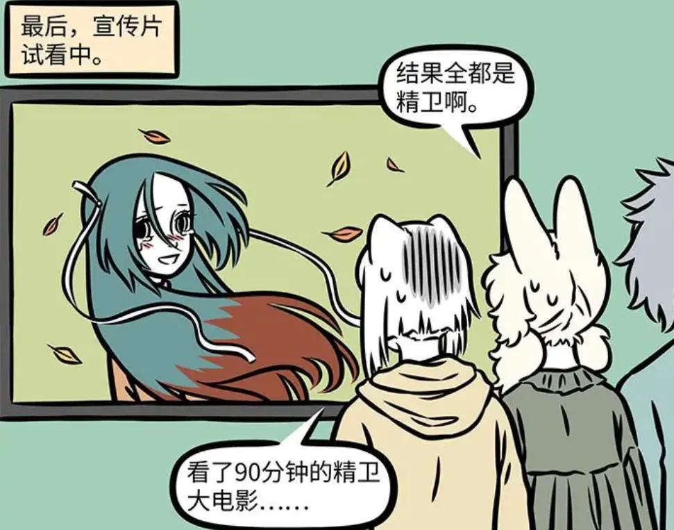 太白金星还邀请精卫参演自己的下一部电影,换成是其他人,肯定就立马答应了,可是精卫却故意推脱了一下,表示要看自己有没有档期,就如同流量大明星一般,一旁的九月目睹此景,也不禁感叹精卫原来这么强的吗?最终,非人哉公司的宣传片出来了,可是九月、烈烈、啸天、小玉等人的镜头都被删剪完了,影片里基本上全部都是精卫。